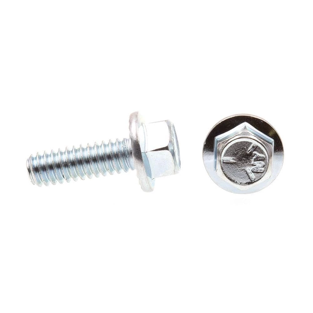 Flange bolts feature a built-in washer under the bolt head that helps to distribute the clamping load over a larger area. This 1-piece design eliminates the need of a separate washer under the bolt head and is preferable for some applications as it can be more efficient and easier to use. A washer is still needed on the nut side unless using a flange nut. The serrations under the flange bite into the surface and help to resist loosening due to vibration.