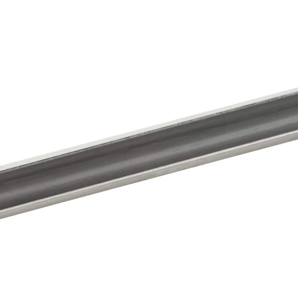 This is a 96 in. stainless steel track repair cap that can be used on damaged patio or wardrobe door tracks. The track can be cut to size.