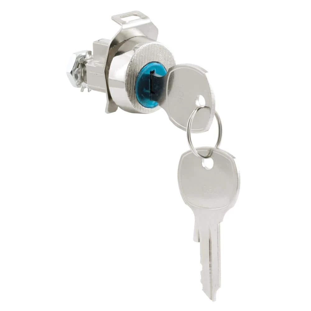 This mailbox lock is constructed of diecast and comes with a nickel-plated face. This item does not include any cams, only the spring steel locking clip required for installation of lock. The mailbox lock features a spring-loaded key hole dust cover, brass pins, a square drive and nut with star washer for cam attachments. To unlock this mailbox lock, the key must rotate 90 degrees in a clockwise direction, and the key is not removable from the lock until it is returned to the locked position. This mailbox lock replaces Auth-Florence mailbox locks. Note: When determining cam dimensions, the locking dimensions are of primary concern. Shape of cam is secondary.