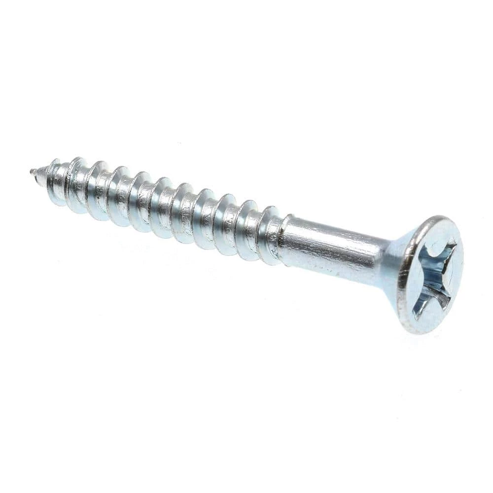Wood screws are used to attach 2-pieces of wood together. They feature a pointed tip that helps drive into wood. Pilot holes are sometimes needed to avoid splitting the wood.