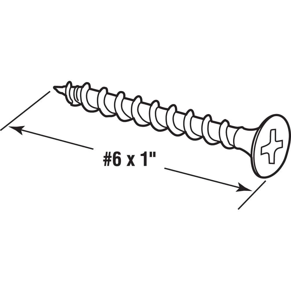 - Screw size is #6 x 1-in. with coarse thread and bugle head style