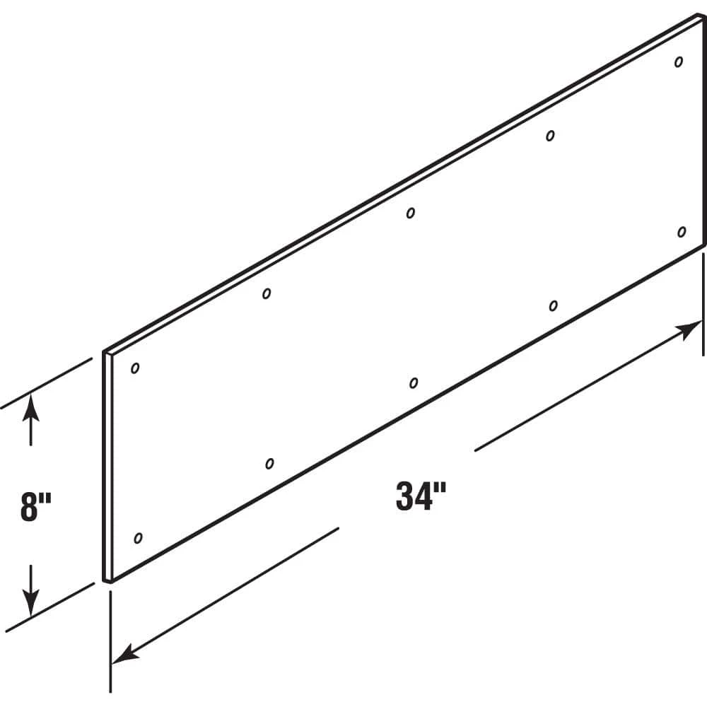 - This kick plate measures 1/32 in. x 34 in. x 8 in. with custom sizes are available through special order from manufacturer