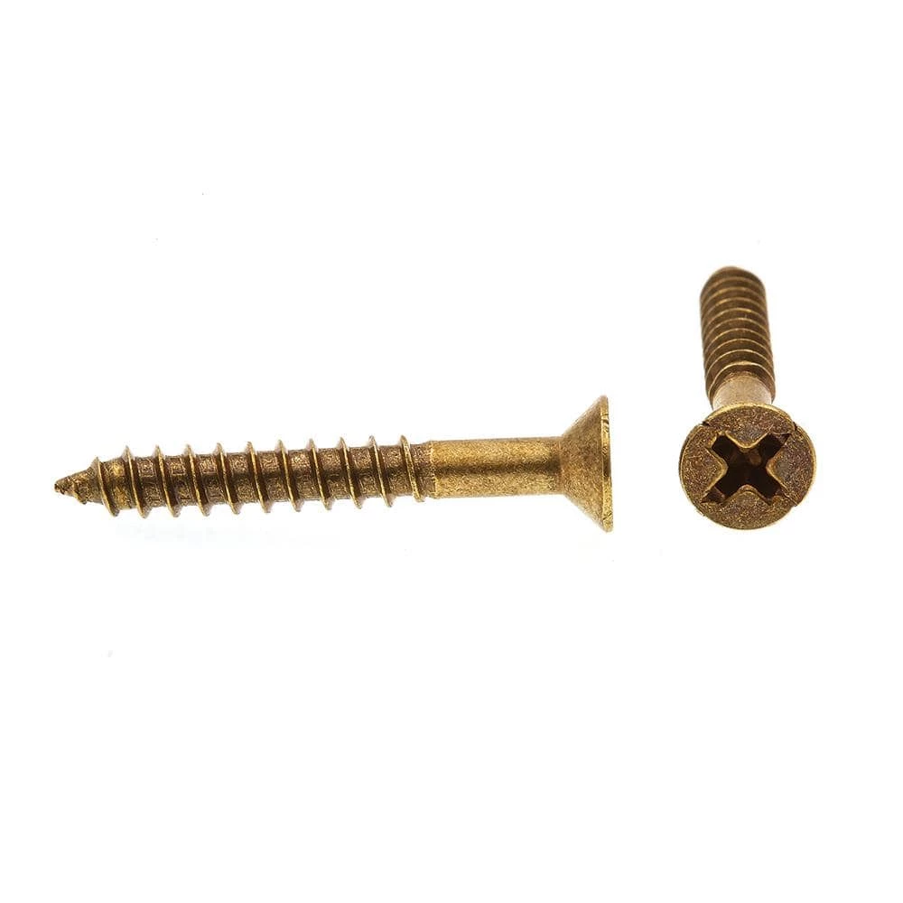 Wood screws are used to attach 2-pieces of wood together. They feature a pointed tip that helps drive into wood. Pilot holes are sometimes needed to avoid splitting the wood.