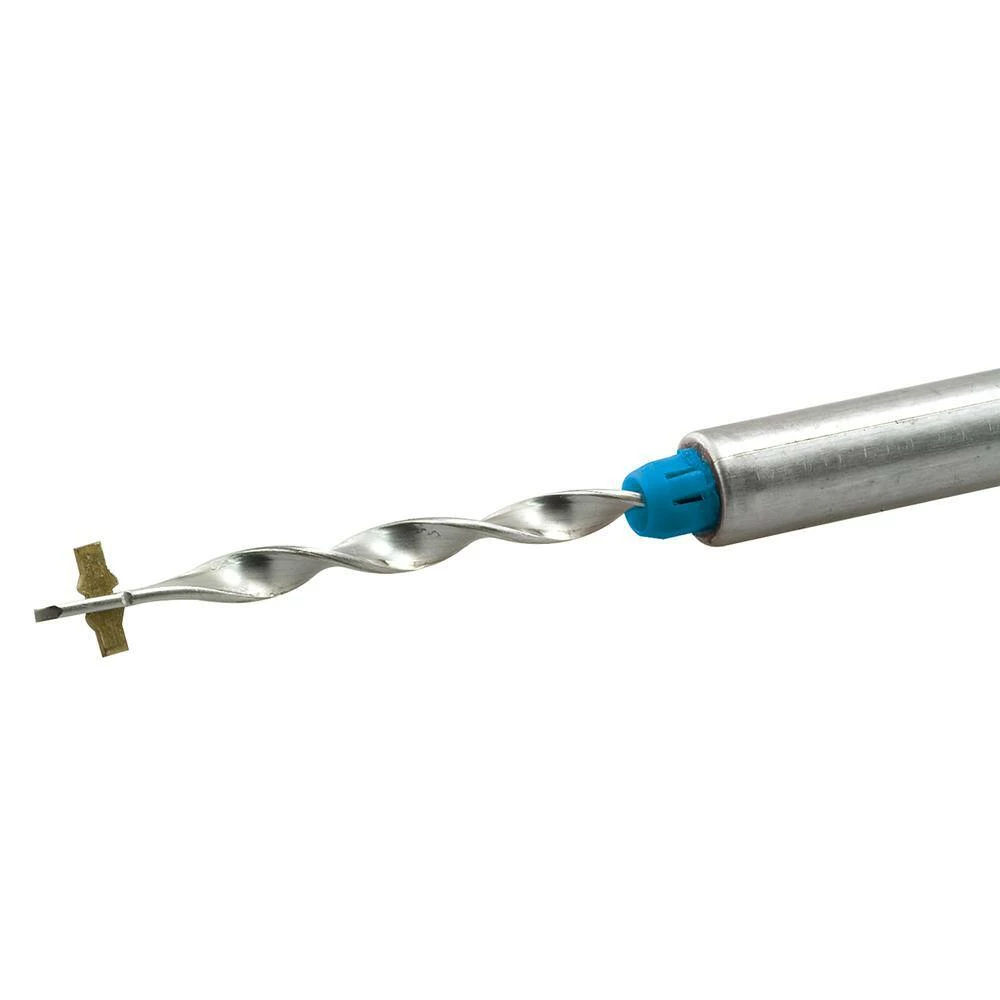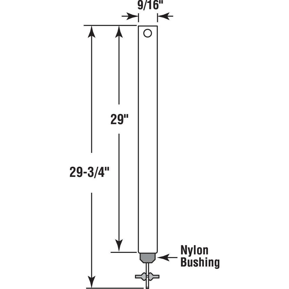 This is a non-tilt style spiral balance with a blue bushing at its tip. It has a bow tie shaped device installed in the end of the spiral rod. The bow tie engages a balance foot that has been installed on the bottom edge of the window (vent) with a dual hook protruding out from the corner for the bow tie to engage. It is often used on wood windows, but may be found on other windows as well. This balance is 29 in. long and 9/16 in. in diameter. It is charged or wound up by using the Prime-line H 3787 Tensioning Tool.