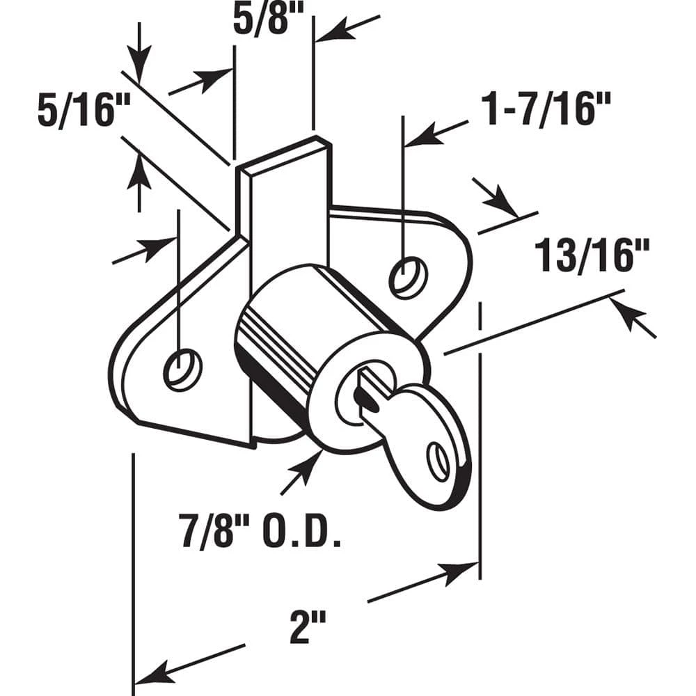 This drawer and compartment lock is constructed from die cast and comes plated in brass. It features a 5/16 in. bolt throw with keyed locking and includes 2 keys. This style lock easily fits a 7/8 in. diameter mortise.