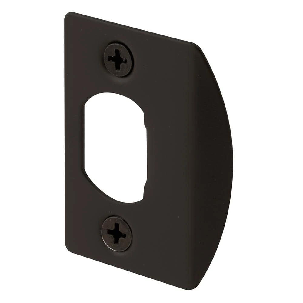 These Prime-Line latch strike plates (2-pack) are constructed from steel and come powder coated in bronze. Featuring an adjustable tab and 1-5/8 in. hole centers, these strike plates replace most residential interior and exterior strikes. Fasteners are included for quick and easy installation.