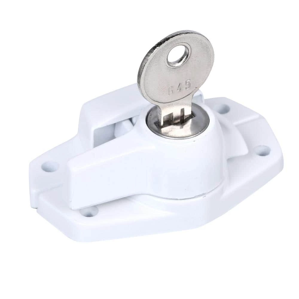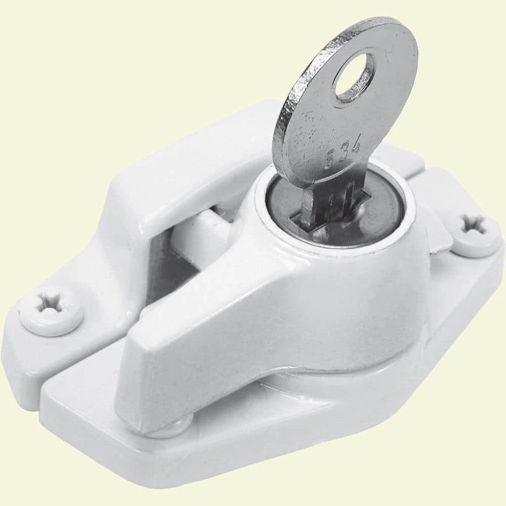 This is a keyed child proof sash lock. It is constructed of heavy diecast zinc and comes with a white enamel finish. This sash lock can be used on vertical, single and double hung sliding windows, as well as horizontal sliding windows. It can be installed on aluminum, vinyl, and wood sashes and frames. The child-proof design can only be unlocked with the provided keys. Can be used to child-proof windows.