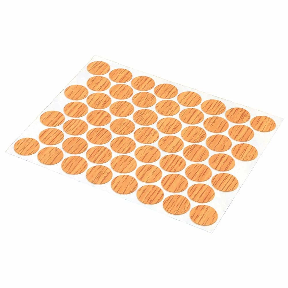 These are high performance self-adhesive cover caps for covering unsightly screw holes provide the finishing touch with a long lasting permanent bond. Caps measure 9/16 in. outside diameter and are made of durable PVC material and include 53 caps per package. Easy to install.