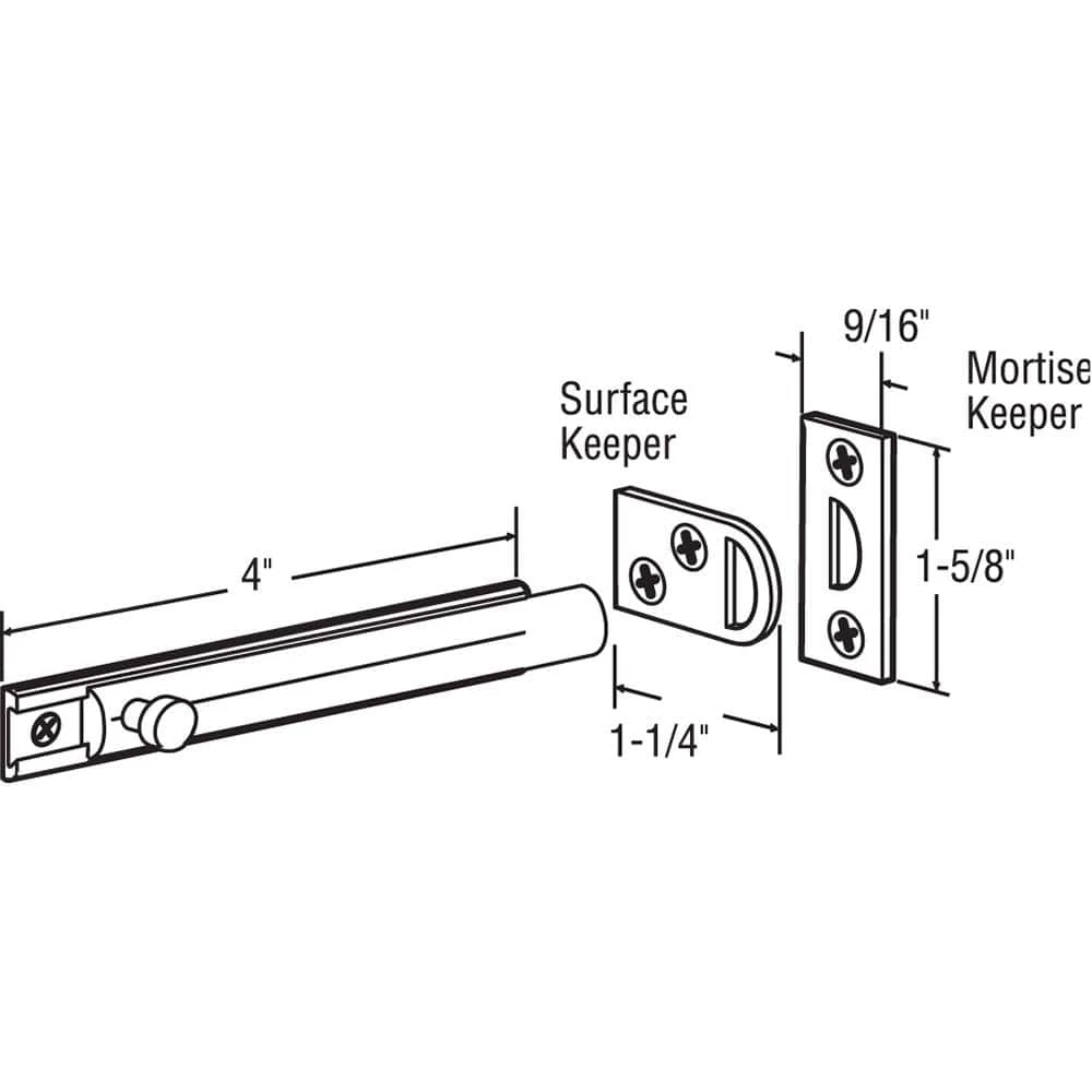 - Contains one slide bolt, and two different keepers