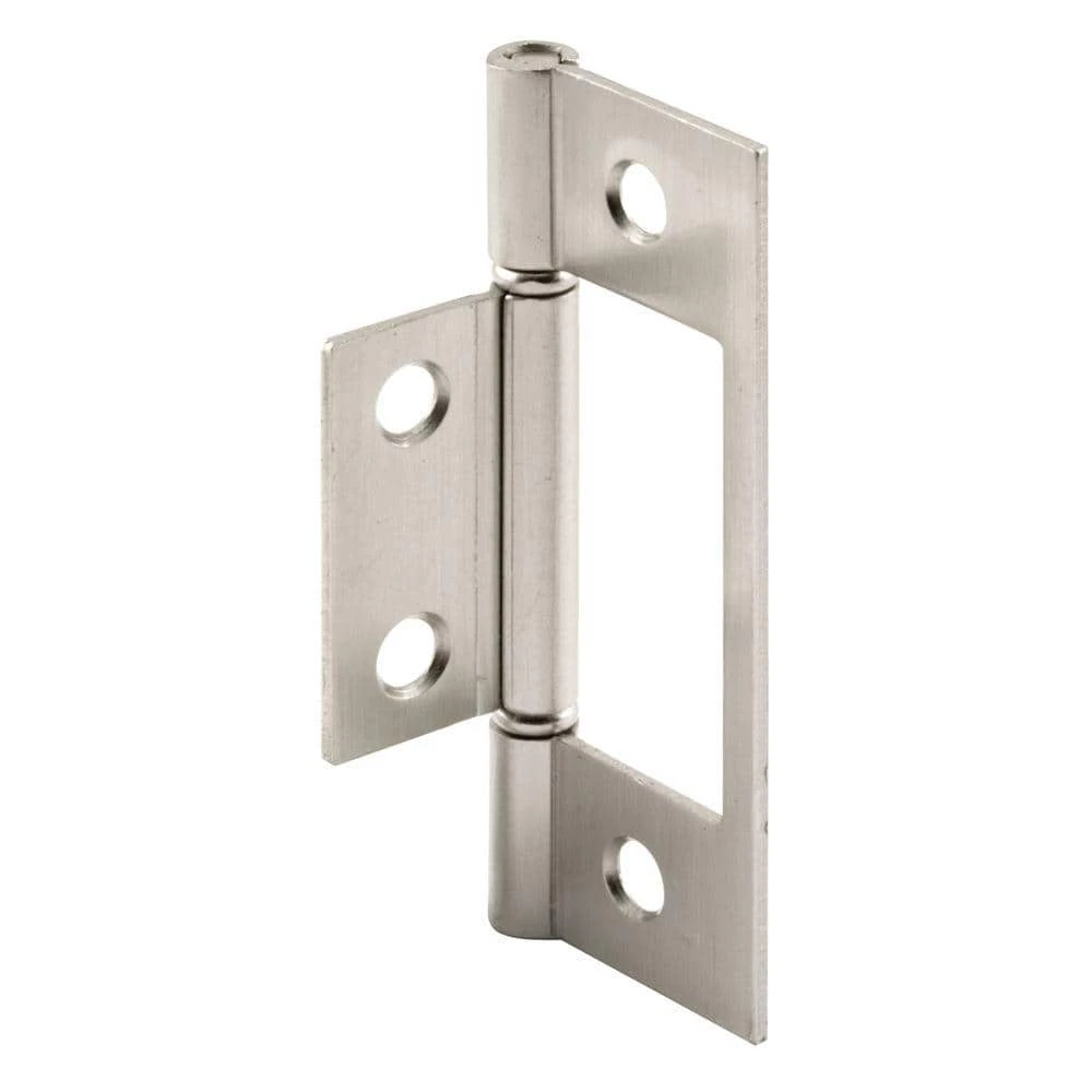 This bi-fold door hinge is constructed from steel and comes nickel plated. It has a cutout to allow for non-mortise installations. This hinge is used by many wardrobe door manufacturers.