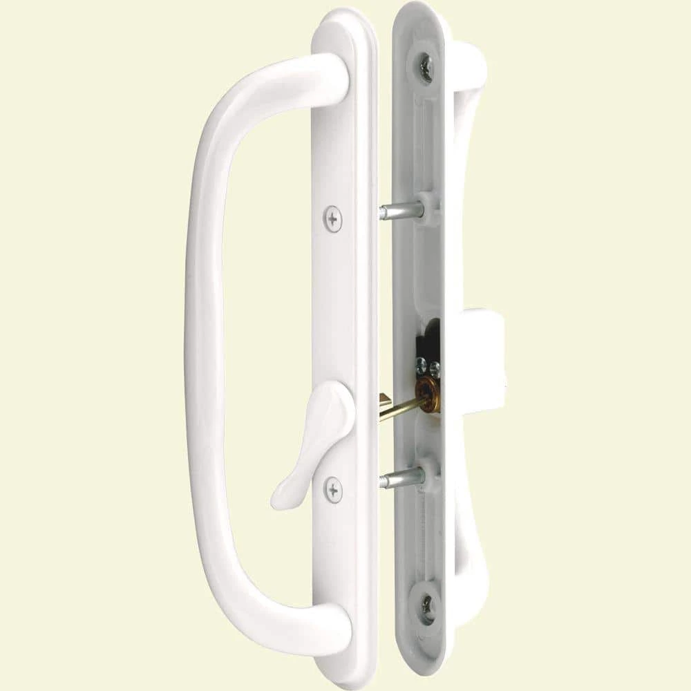 This stylish patio door handle set comes with 10 in. matching inside and outside white handles with an offset thumbturn/ lever. It can be used on either right or left handed doors. It is keyed and used by many patio door manufacturers. The white diecast lever operates most mortise latches installed in the door (see Prime-Line parts E 2008, E 2009, E 2014 or E 2111). This is non-keyed but can be keyed by installing the Prime-Line part E 2195 cylinder housing onto the outside handle or replace the outside with the Prime-Line part C 1120 keyed outside handle.